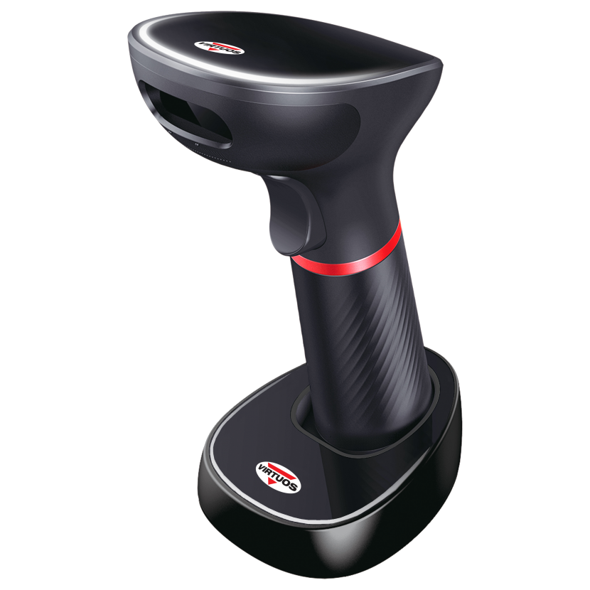 Bezdrátová 2D CCD čtečka čárových kódů VIRTUOS HW-855A, wireless, s dobíjecí základnou s USB připojením a klávesnicovou a RS-232 emulací.